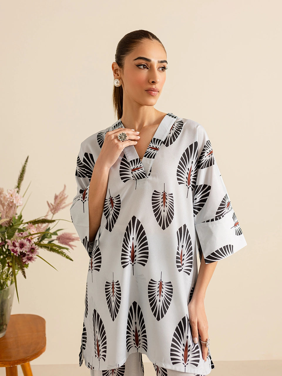 Description: This coord set is a celebration of simplicity with its clean white base and striking black leaf patterns. The minimalist design is elevated by the comfortable and contemporary silhouette, making it a perfect pick for those who prefer understated elegance.