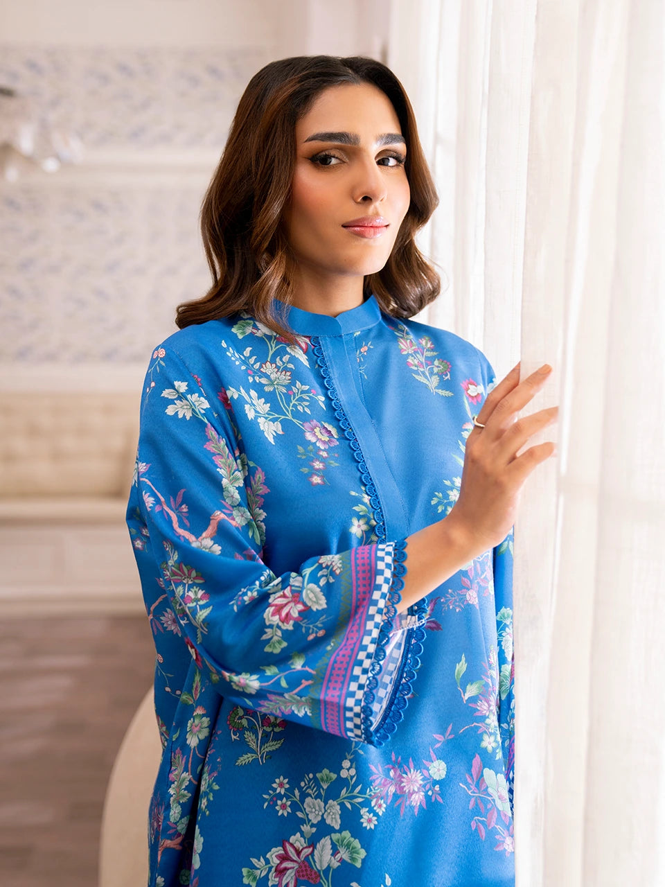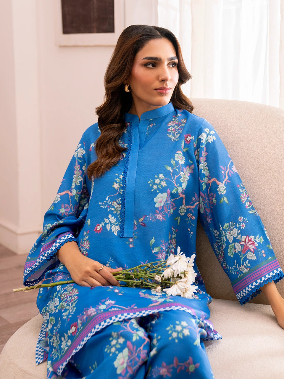 Description: Radiate charm in this cobalt blue set adorned with scattered floral motifs—a vibrant touch to your everyday style.