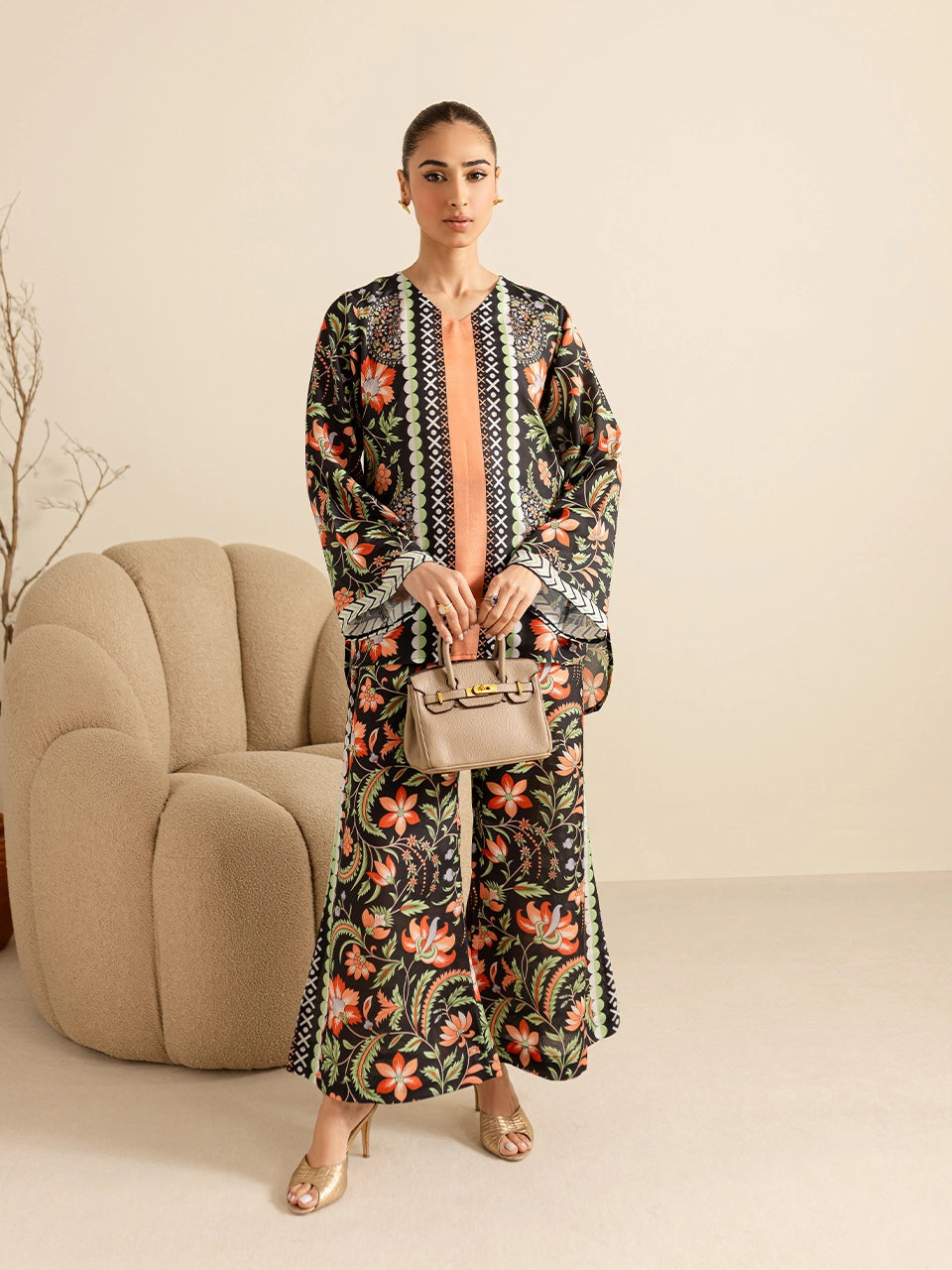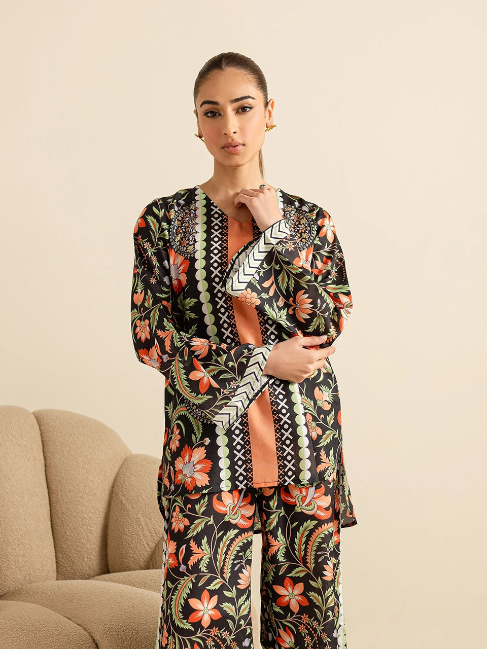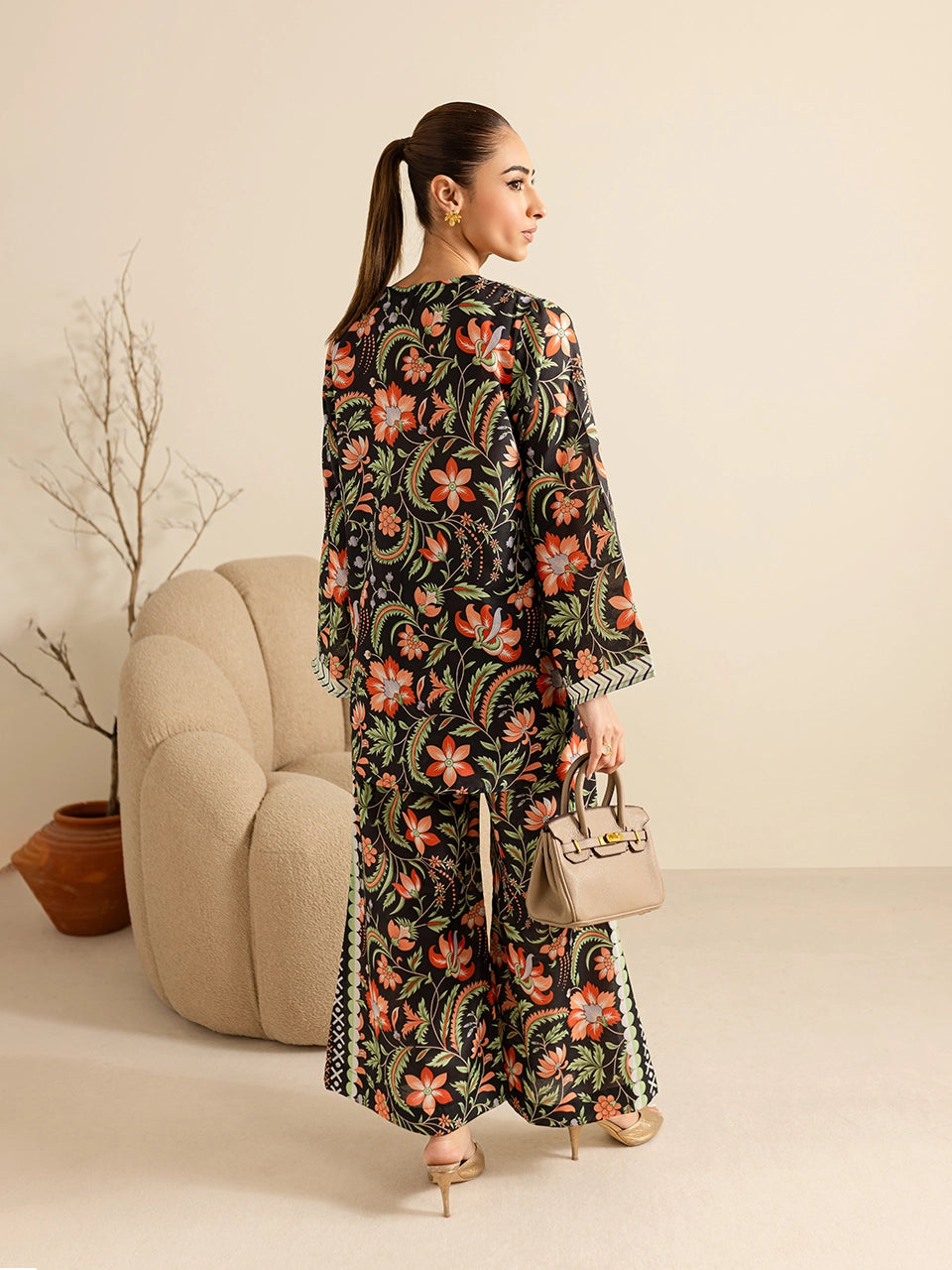 Description: Make a statement with this striking black coord set adorned with vibrant floral patterns. The bold design is balanced with a flowy cut and soft fabric, offering both comfort and a sense of elegance. Ideal for evening gatherings or festive celebrations, this outfit is a blend of modern style and timeless beauty.