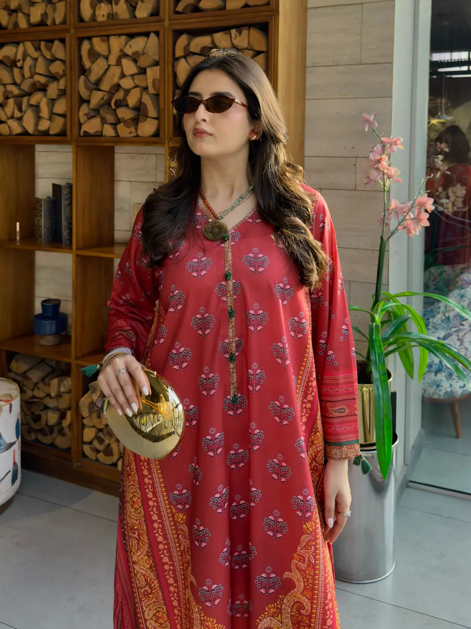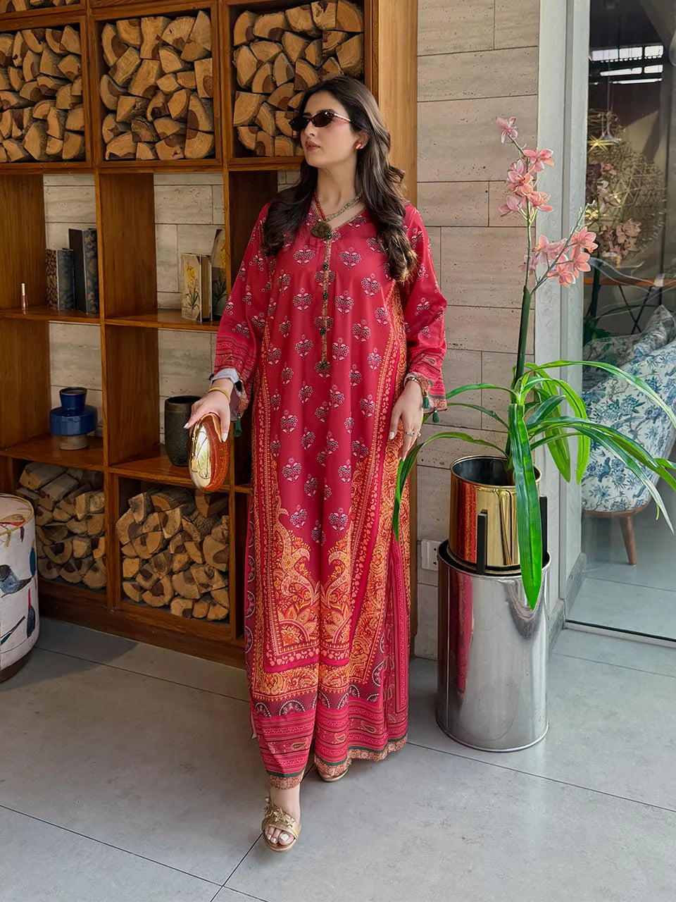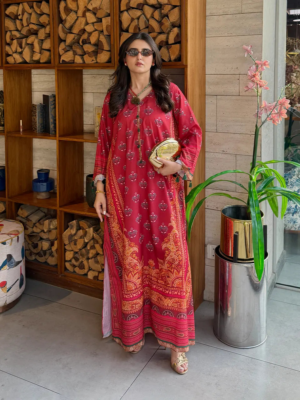 Description: Radiate confidence in this rich crimson kaftan adorned with intricate motifs and an ornate border. Crafted from soft crepe, it flows effortlessly—perfect for evening elegance with a touch of warmth.